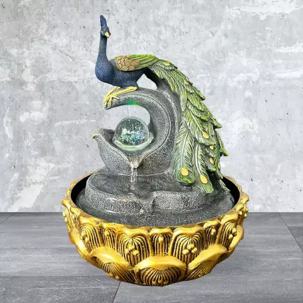 ✔ Bao gồm : 1 đế + 1 tượng chim công + 1 ngọc lưu ly phát sáng + 1 máy bơm mini